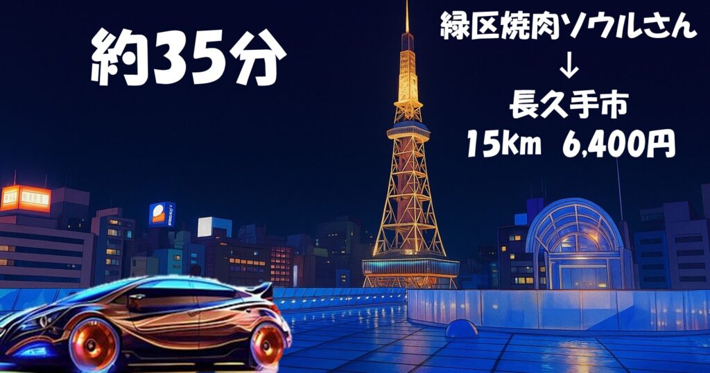 今回は緑区にある「焼肉ソウル」さんから長久手市までお客様をお送りいたしました♪
